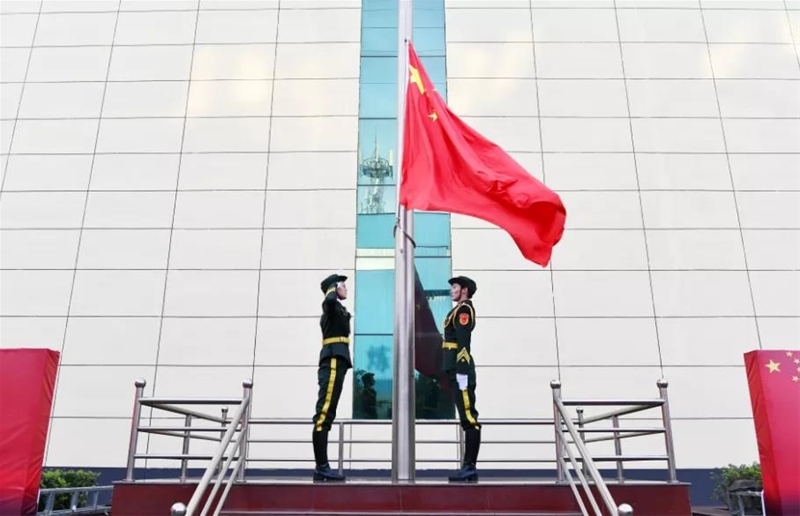 参加仪式的干部职工全体肃立,向国旗行注目礼,大家注视着国旗高唱国歌,一面鲜艳的五星红旗冉冉升起,共同祝愿祖国繁荣昌盛、祝愿企业基业长青、祝愿人民生活越来越好。