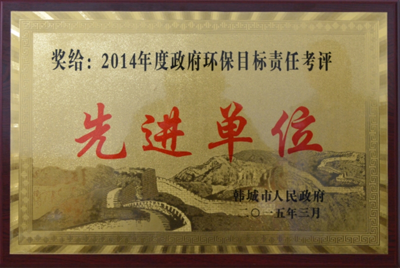 公司荣获“韩城市2014年度环保目标责任考评先进单位”荣誉称号