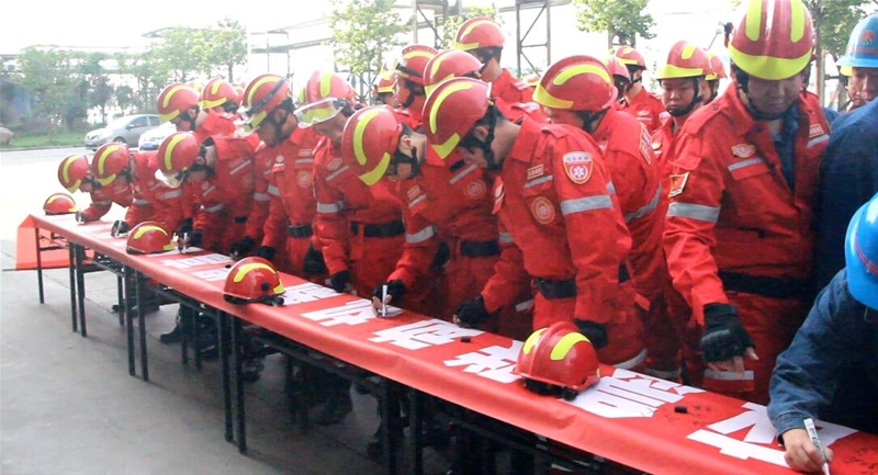 仪式上,杨召朋对此次活动的开展作了具体的要求和动员。随后全体人员共同重温了应急救援誓词,并在主题横幅上庄重地签下承诺。