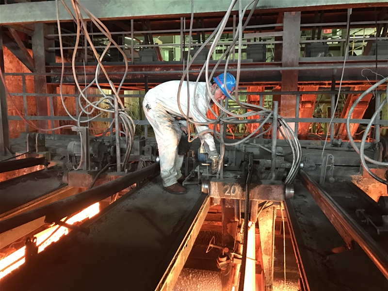 4#连铸机投产后,因工作需要他来到连铸,这一干就是8年。在这8年里,他不怕苦不怕累,爱岗敬业,好学上进。2010年,他由于业务能力突出,被任命为台下组长。彼时4#连铸机刚投产不久,设备故障率居高不下,现场存在安全隐患,而他凭借自己干过维修工的特长,经常主动整改安全隐患。原来在线抢检修,岗位工只是配合钳工,但他从不那样想,总是亲自动手参与抢检修,许多人问他,“延明,你这样累死累活的是何苦呢?设备故障有钳工处理,歇歇吧。”但他总是笑呵呵的说:“你们歇吧,我不累。”刚生产出来的铸坯,表面温度达700—800度,但是他经常冒着常人难以接受的温度在线手工切割钢坯。每次处理完后他总是大汗淋漓浑身湿透,像是从水里捞出来一样。