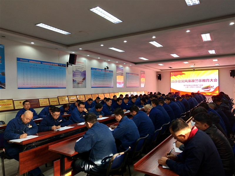 炼铁厂:12月9日,炼铁厂党委在分厂第一会议室召开了四季度党风廉政警示教育大会。炼铁厂党委班子、全体中干、外协各单位负责人以及职工代表100余人参加会议。会议首先传达了公司党委12月份党群工作例会会议精神,集中观看视频《宁波市人大常委会原副主任苏利冕的变轨人生》,组织学习了公司关于对“11.18”车辆伤害事故的处理决定和《中国共产党纪律处分条例》《国有企业人员失职案件中“严重不负责任”的认定》《张华受贿二审刑事裁定书》等相关廉洁文件精神。会上,纪委书记杨佳伟首先分析了2018年纪检工作中存在的不足和问题,针对干部作风、纪检工作认识、各级纪检职责落实不到位、专业管理不专业等六项不足问题,要求各级管理人员严格履行自身职责,主动作为,强化自身作风建设,廉洁自律工作,严格按照规章制度办事,洁身自好,杜绝野蛮管理;同时要求各级纪检单位扎实有效开展经营复核工作,加强专业管理人员培训,加强监督检查各类规章制度的落实情况,尤其对外协工队、施工单位的劳动纪律等监督检查,营造风清气正的干事氛围。最后,该单位行政负责人冯伟就如何落实党风廉政“一岗双责”、下阶段工作计划等方面进行了分享和要求。各级领导干部要进一步树立廉洁从业思想关,带头垂范,紧紧抓好党风廉政“一岗双责”,尤其是近期与外协单位协作紧密,坚决杜绝相互走访、收受礼品礼金等违章违纪行为;二是要求各基层单位、各级负责人就“11.18交通安全事故教训”要扎实认真学习,要层层抓安全落实,各级管理人员有义务,有权利,更有责任对全员违章违纪行为及时纠偏、及时制止,确保全员共同抓安全;三是关于不文明行为,要结合公司“六个一”和“两不一自觉”活动要求,严格按照“执行 落实 对照 自省”八字管理要求制止自身不文明行为;四是针对目前环保严峻形势,各级管理干部要真抓实干,积极行动,积极落实,确保从环境绿化、节能减排、除尘防污、美化亮化等多方位全面强化内部环境综合提升。