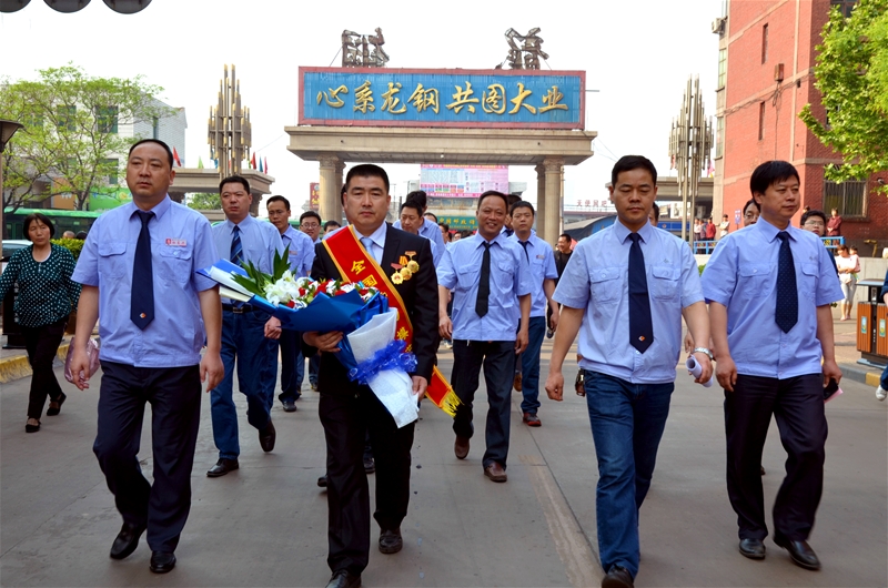 4月28日,在全国庆祝“五一”国际劳动节暨表彰全国劳动模范和先进工作者大会上,我公司炼钢厂转炉作业区党支部书记、作业长薛小永荣获“全国劳动模范”荣誉称号,并在人民大会堂接受了这一荣誉。
