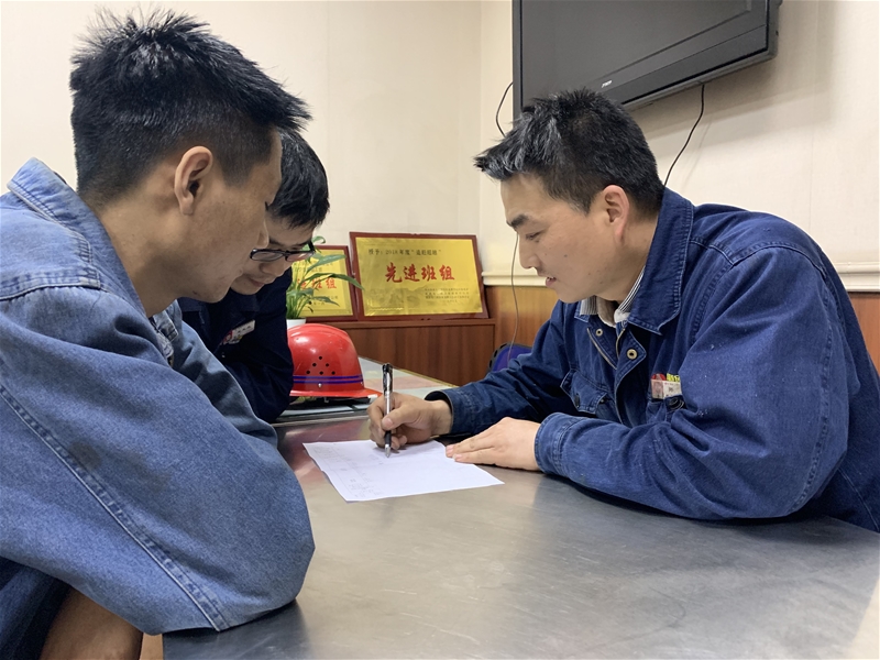 “液压传动的工作原理是以油液为工作介质,通过密封容积的变化来传递能量,经过各种控制阀和管路的传递,借助液压执行元件把液体压力能转换成机械能,从而传递运动和动力。它主要由5部分组成……”在该单位转炉维修老区班前会上,区域负责人孙飞正指着黑板上的液压传动器结构图给大家剖析液压传动原理和构造的相关知识。