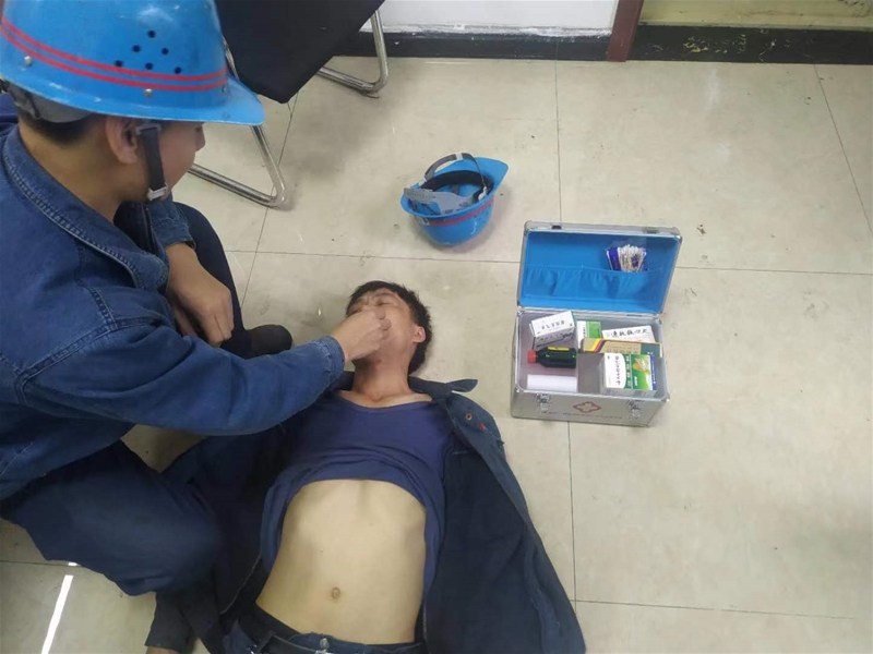 为进一步增强员工应急处置能力,做到从容应对人员中暑突发情况。该单位将中暑应急响应归纳总结为以下五步:1、搬移:迅速将患者抬到通风、阴凉、干爽的地方,使其平卧并解开衣扣,松开或脱去衣服。 2、降温:患者头部捂上冷毛巾,用50%酒精、白酒、或冷水进行全身擦浴,直至体温降至38摄氏度以下。 3、补水:患者仍有意识时,可给一些清凉饮料,在补充水分时,可加入少量盐或小苏打。4、促醒:病人若失去知觉,可指掐人中、合谷等穴位,使其苏醒。若呼吸停止,应立即实施人工呼吸。 5、转送:对于重症中暑病人,必须立即送医院诊治。截至目前,该单位7个作业区共开展32次中暑应急演练。