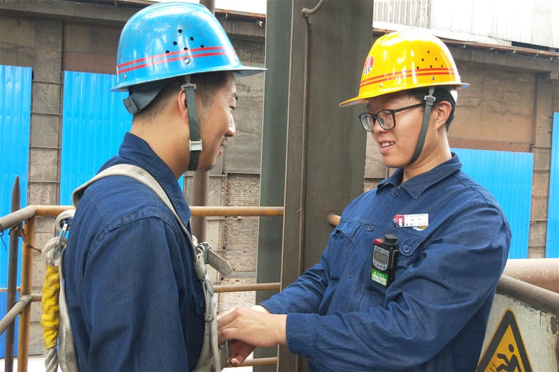 在3号热风炉更换腐蚀桥架现场,安全员张宁正认真仔细核对派工单上的安全措施,反复强调现场作业危险因素。“张安全,看我的安全带使用正确吗?发现考核项目了吗?”作业人员柳小刚打趣地问到。“系安全带时,应束紧腰带,腰扣组件也必须系紧系整!最重要的一点是安全带一定要高挂低用!”张宁一边讲到,一边检查安全带是否有磨损,绳子是否有打结。当他交代完一系列安全措施后,放心地说到:“多大的效益都比不上员工的作业安全,只有员工安全,就是公司最大的效益。”