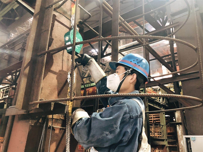 “现在高空作业更加安全了,这种高空防坠器,彻底解决了高空作业移动的难题。”“可不是,真的是太好了!”在6#炉检修现场,两位维修人员正在交谈。