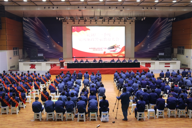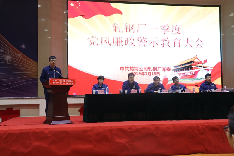 1月18日,轧钢厂党委组织召开一季度党风廉政警示教育大会。轧钢厂党委班子、全体中干、关键岗位人员、一般人员及外协单位人员300余人参加会议。会议集中观看了视频《一抓到底正风纪——秦岭违建整治始末》,学习了《“讲政治、敢担当、改作风”警示教育》材料。