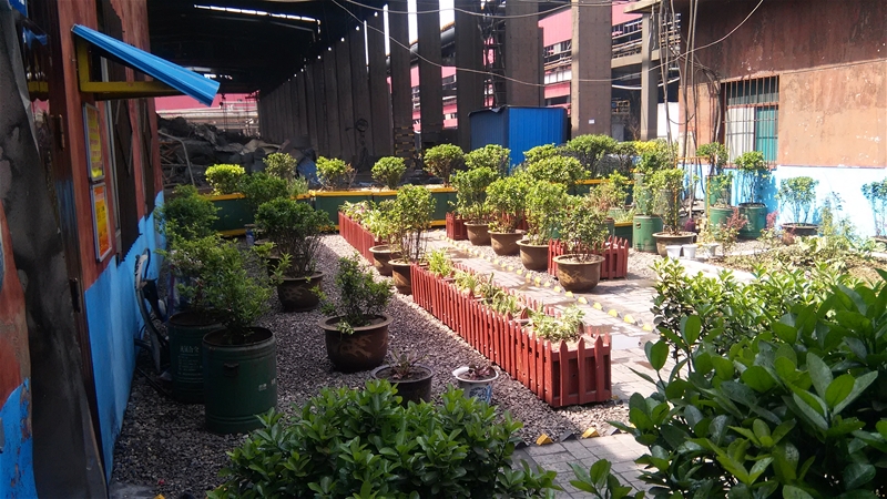 “见缝插绿”:针对厂房内参观主通道及部分可栽植区域,采取“见缝插绿”进行绿化培植。目前厂房内主通道参观沿线更换栽植盆景43处,厂房内裸露区域空地面积搁置盆景67盆基,本实现厂区内“处处可见绿、时时碰到绿”。