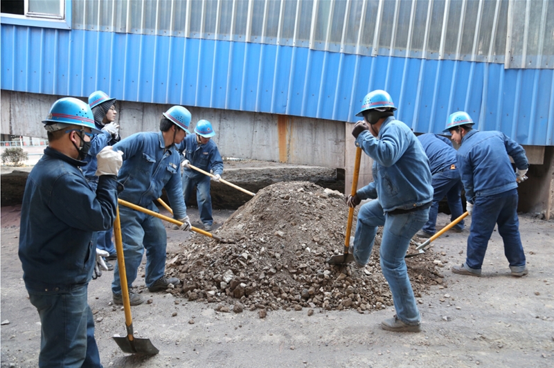 活动现场,党员干部以身作则、以上率下,不顾天气寒冷,挥舞铁锨、洋镐,对现场绿化区域、皮带通廊下的“顽土”进行清理,团员青年更是不服输,捡拾垃圾、清理杂草、铲除淤泥,铁锨、锄头轮番作战,充分发扬年轻人不怕苦、不怕累、不怕脏的战斗精神。通过活动,增强了干群凝聚力和向心力,进一步激发广大职工工作热情和积极性,同时为2016年春季现场绿化工作奠定了有力基础。