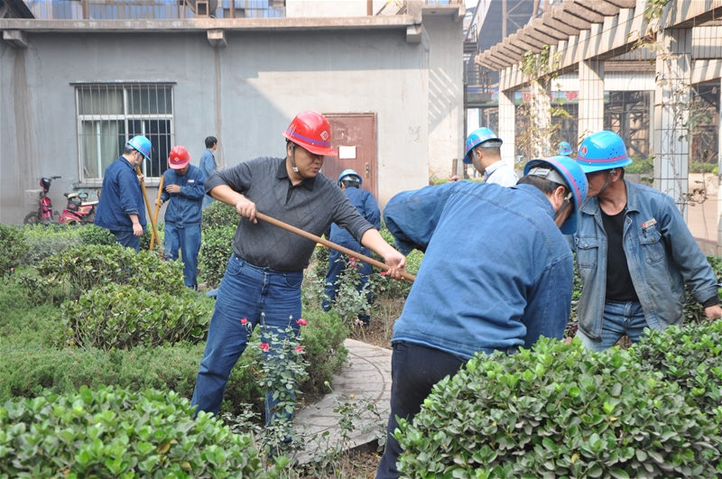 党员干部义务劳动,提升团队凝聚力。在做好清洁日机制的同时,该厂每月组织党员干部开展一次现场绿化义务劳动,发扬自力更生、艰苦奋斗、模范带头作用,对厂区绿化带落叶、垃圾土、石块进行了彻底的清理、土壤翻新并平整,做到绿化带见黄土、地面平整,十月份共清理枯死落叶80kg,垃圾土1500m³。