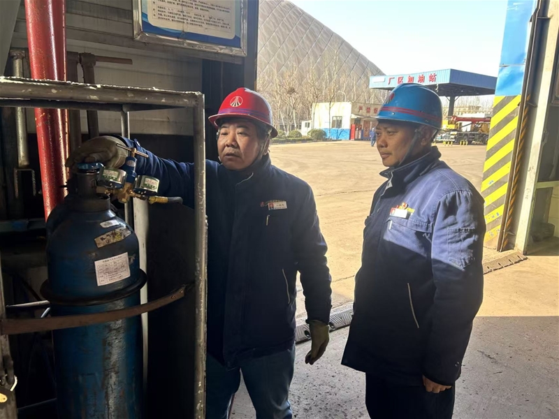 公司车辆维修工房内,两名技术骨干正俯身检查压力容器压力表,开阀、关阀、泄压,每一步操作都规范严谨。专业技师卜海龙紧盯指针刻度,不放过任何一丝细微偏差。该单位秉持“精益求精、务求实效”的理念,全面梳理区域所有压力容器、压力管道及配套仪表,建立“一台一档”管理台账,对校验周期、运行状态、维护记录等逐一核查落实。通过“每日巡检、每周排查、每月复盘”的闭环管理模式,确保区域范围内的压力容器、压力管道及配套仪表运行偏差均能纠正于初始阶段,全力保障设备始终处于最优运行状态。