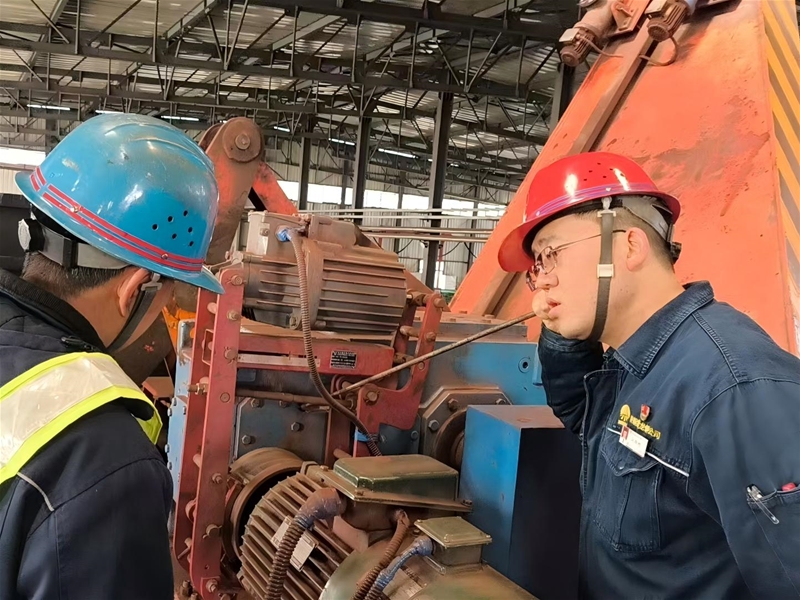 炼钢厂天车工段内,储运中心副主任工程师佘小龙带领设备管理骨干,实地对标学习先进经验。从龙门吊设备联锁、台账精细化管理,到作业流程标准化、异常处置实战化演练,每一个细节都认真记录、深入研讨。