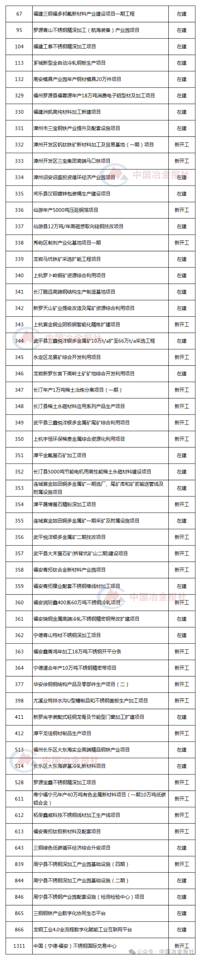 经统计,名单中共包括钢铁冶金及相关行业项目58个,具体如下: