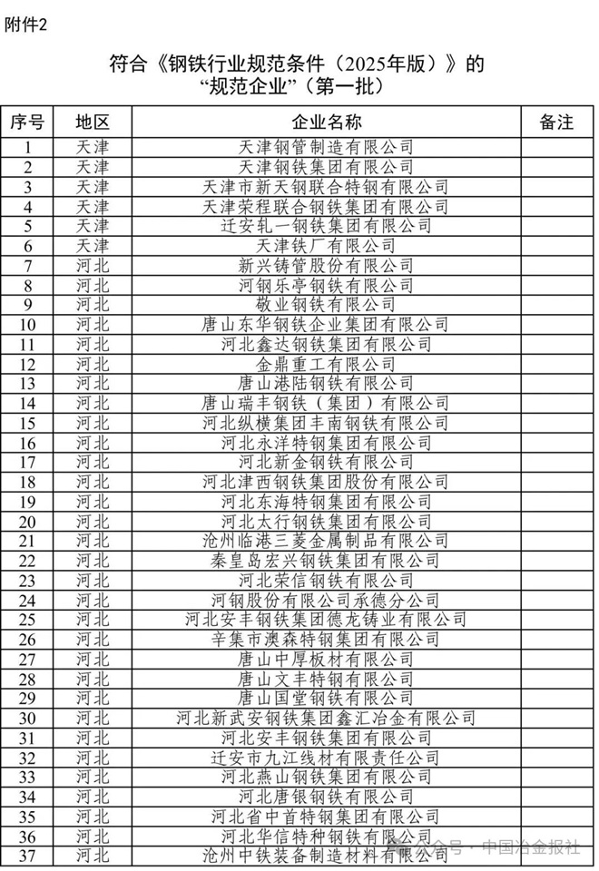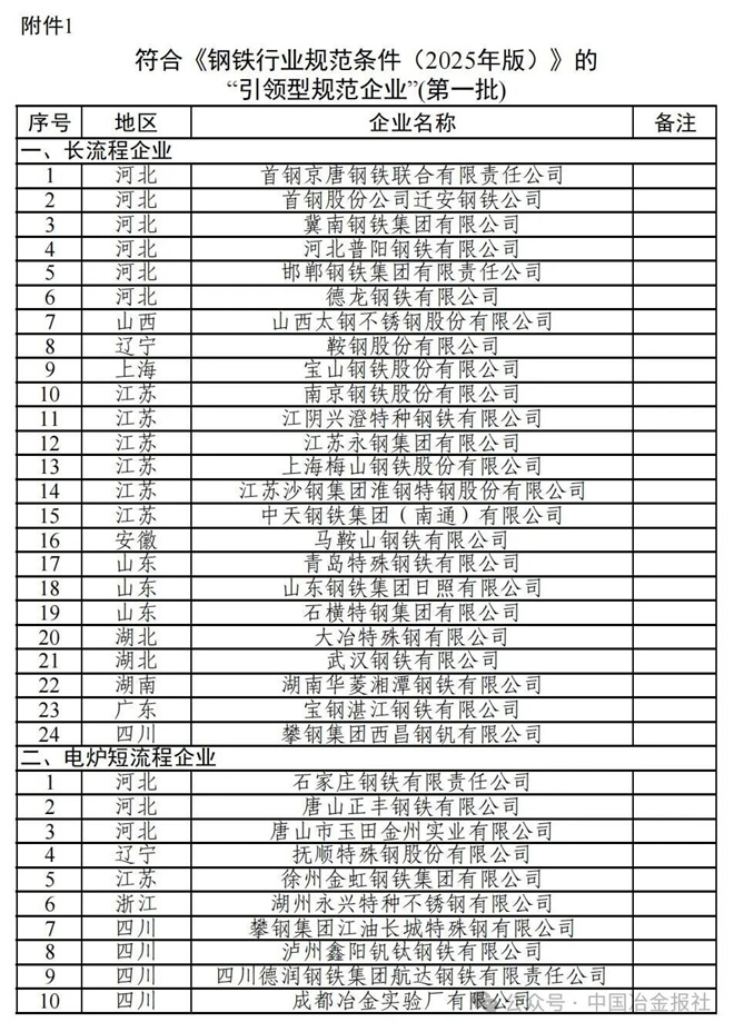 2.符合《钢铁行业规范条件(2025年版)》的“规范企业”(第一批)
