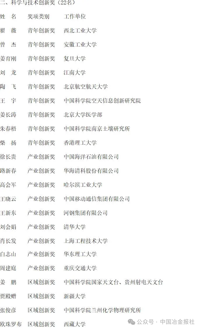 本次何梁何利基金科学与技术进步奖授予32位在物理天文、生命医学、能源安全、工程技术等领域取得重大科学发现,或作出突出贡献的优秀科技工作者。何梁何利基金科学与技术创新奖下设青年创新奖、产业创新奖、区域创新奖三大类,共授予22位优秀科技工作者。