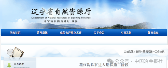 近日,从辽宁省自然环境厅网站发布的《花红沟铁矿进入勘探施工阶段》一文中获悉,本溪市桥头镇花红沟铁矿普查探矿权已完成全部转让登记手续,正式移交五矿世纪矿业(本溪)有限公司,计划于4月初正式启动勘探施工工作。