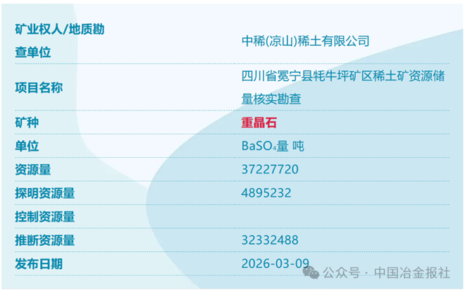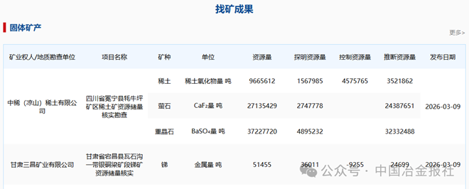 近日,从自然资源部网站获悉,我国新一轮找矿突破战略行动再添新成果,四川冕宁、甘肃宕昌发现固体矿产,分别是稀土、萤石、重晶石、锑。