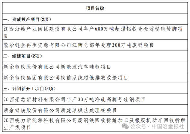 江西省发布多个2026年省重点建设钢铁项目