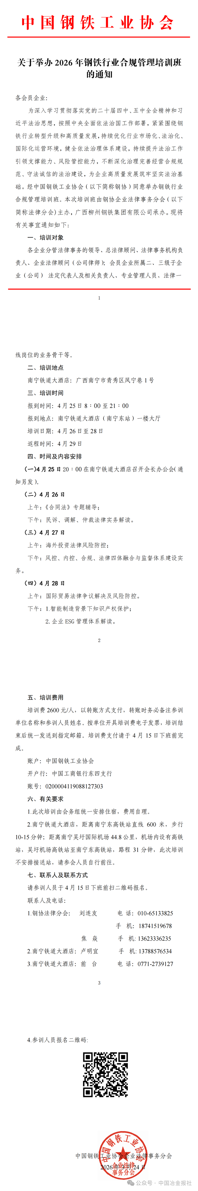 关于举办2026年钢铁行业合规管理培训班的通知